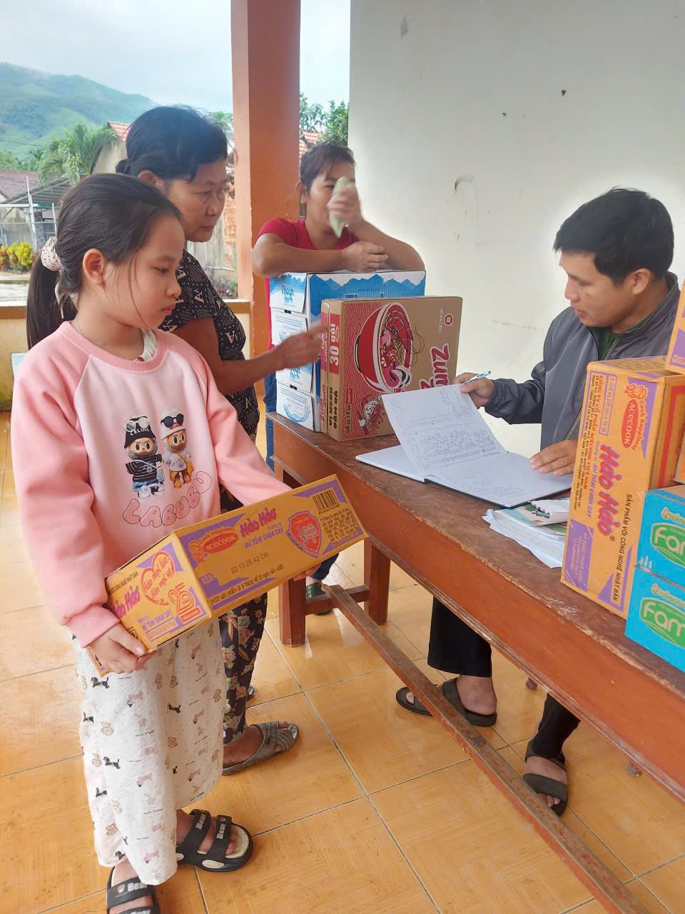 Tại các điểm tiếp nhận ở các thôn, nhiều hộ dân, các đoàn thể và cá nhân đã tích cực mang đến các nhu yếu phẩm thiết yếu như mì tôm, gạo, nước uống, quần áo cũ còn sử dụng tốt và tiền mặt để chung tay hỗ trợ đồng bào gặp khó khăn. Ghi nhận tại các điểm tiếp nhận, liên tục có người dân đến ủng hộ, thể hiện tinh thần trách nhiệm, nghĩa tình của cộng đồng đối với những hoàn cảnh đang chịu ảnh hưởng nặng nề sau thiên tai.